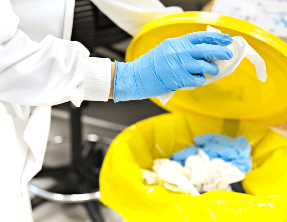 The waste generated by the infected person during the HRP should be double bagged, tied securely, and put aside for at least 72 hours. You can then dispose of the waste together with the gloves, masks, cloths, and other waste generated from disinfecting the room/home.