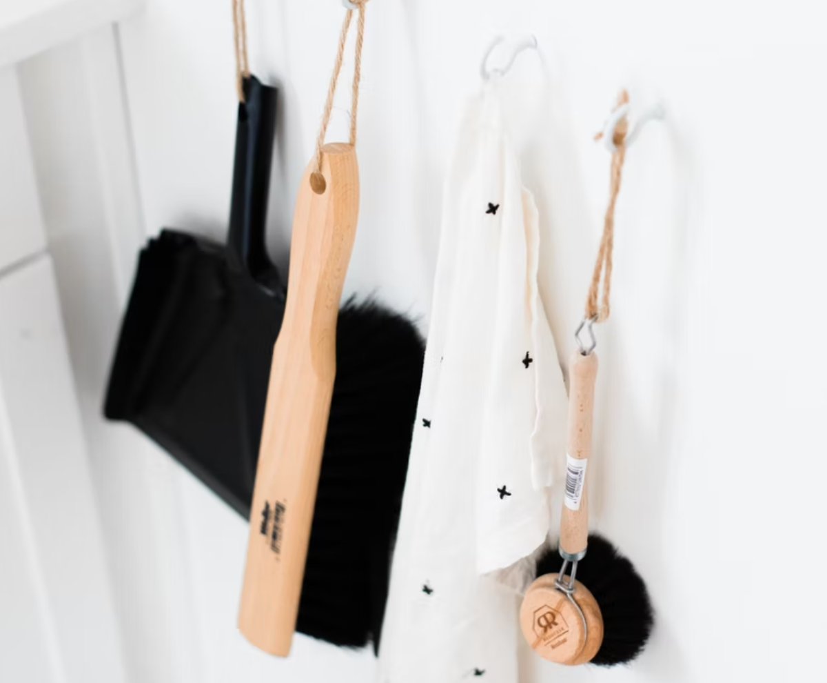 Be sure to include essential items such as a broom & dustpan, a duster, disinfecting wipes and all-purpose cleaner. You may also want to include a small trash can so that you can quickly dispose of any rubbish.