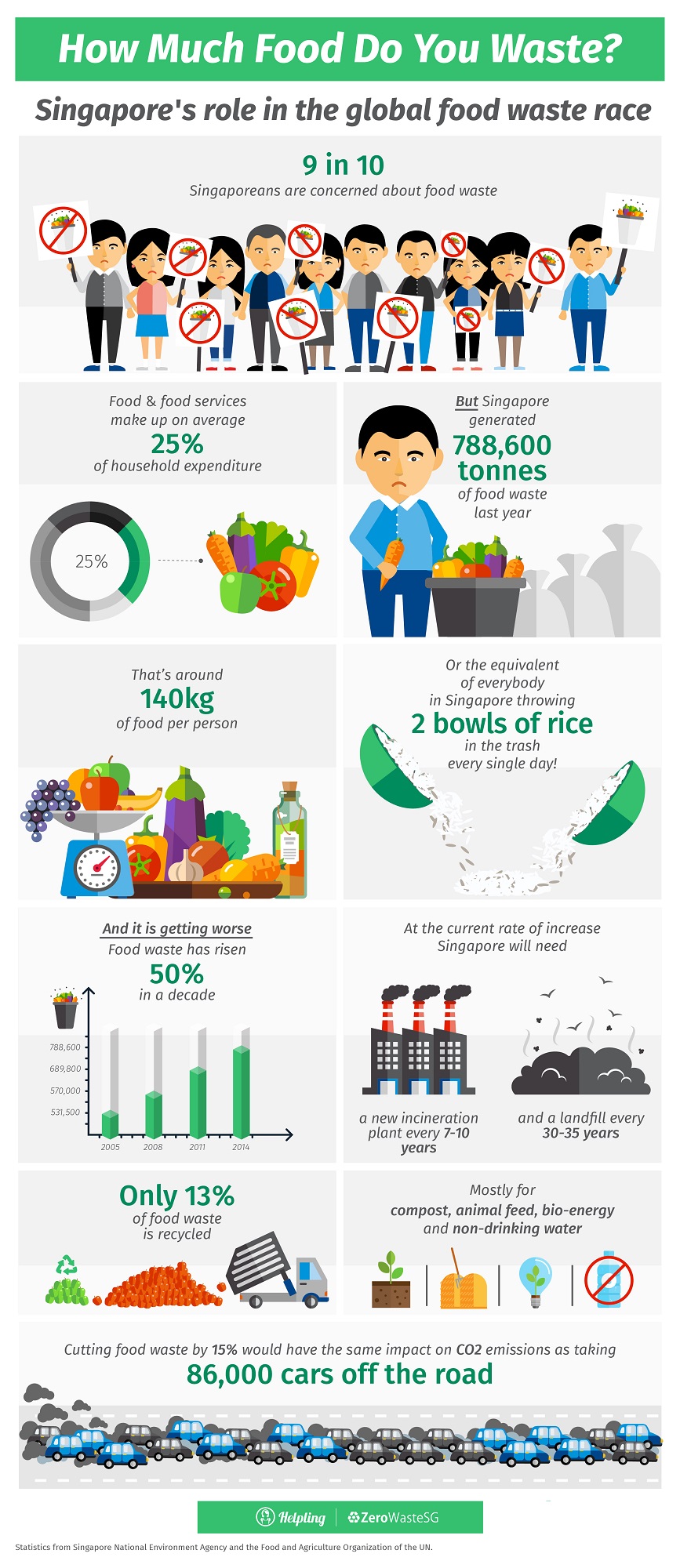In Singapore we love food. It’s something of a national pastime. But for a nation of food lovers, we waste an awful lot. Last year, the amount of food wasted was equivalent to each one of us throwing two bowls of rice in the bin, every single day! That’s a lot of food. 788,600 tonnes of it in fact (or 140kg each).